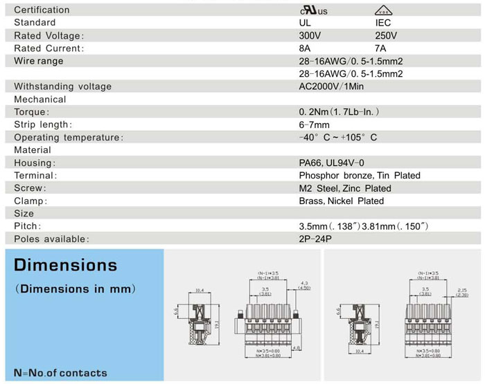 插拔式接线端子 <XY15EDGKAM-3.5/3.81