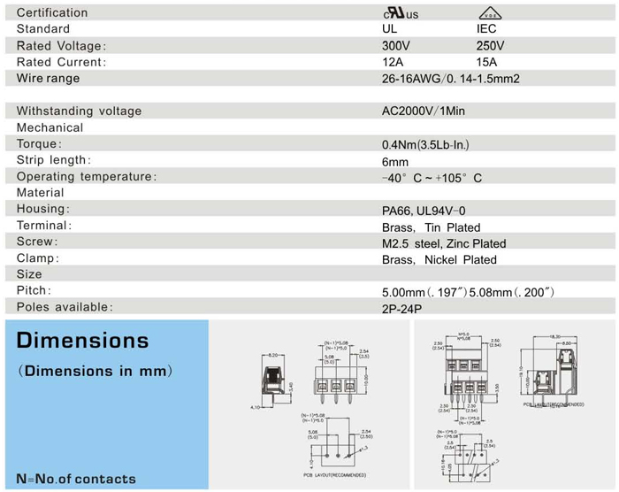 螺钉式接线端子 <XY127A-5.0/5.08