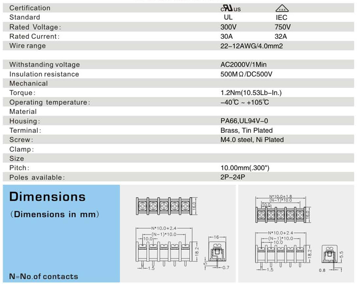 栅栏式接线端子 <XY55C-10.00