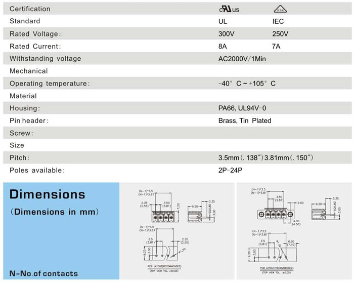 插拔式接线端子 <XY15EDGVCM-3.5/3.81