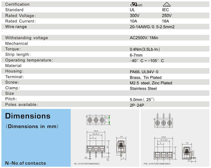 螺钉式接线端子 <XY126R-5.0