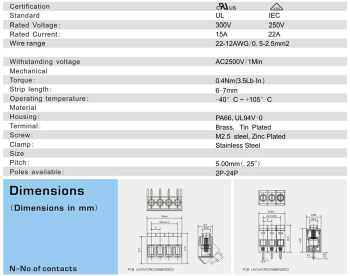 螺钉式接线端子 <XY168-5.0